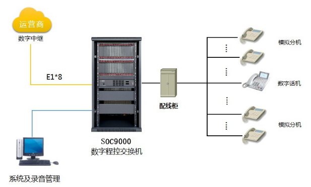 SOC9000系列支持最大物理端口为2048,适用于大中型公司集团电话。